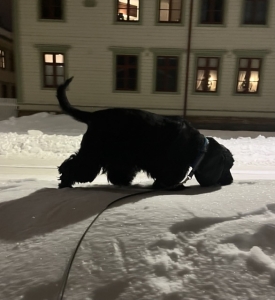 Astutuksen jälkeen huomannut yhden hauskan piirteen Sississä ulkona. Ennen kuljettiin 100 lasissa . Nyt jopa harkitaan viitsiikö kiivetä isoimman lumikasan päälle vai haistelisiko jopa ihan maan kamaralta. Myös kotiin ei kiivetä portaita häntä suorana vaan viitsitään jopa rauhallisesti mennä ralliraput ylös. Asumme toisessa kerroksessa jonne kulku metallisia kierreportaita pitkin Wanha ja suojeltu talo. Nukkumaan ei käydä enään miljoonan solmussa vaan pitkin pituutta.