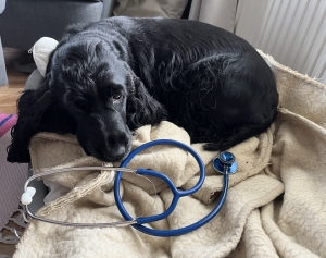 Mikäli kenneliin pentusia syntyy niin nyt ruvetaan olemaan jo lähellä… Sissin maha on pinkeä ja stetoskoopilla kuuluu hyvin tiheitä sykkeitä ( Sissillä ei ole tiheä syke). Maha tippunut ja tissit. Nisät täyttyy maidosta ja olo tukala. Mieheni ja kenneltytöksi leivottu eikun ylennetty tyttäreni auttanut niinä päivinä kun olen ollut itse töissä. Kennelin emännän lomat alkoi eilen keskiviikkona. Synnytysetti kasattu ja lämpöjä mittailtu. Lämmöt sahaa vielä. Ei selkeää laskua saatu kiinni mikä enteilisi synnytystä. Nyt odotellaan.. Ylempänä on kuva minkä laatu suorastaan surkea. Kuvasta ei ole apuja ollut ja pääsiäisen pyhät painaa päälle. Soitellut kaikki alle 150km säteellä olevat klinikat läpi ja selvitellyt kuka päivystää ja milloin? Ylempänä suome löytyi yksi klinikka. Seinäjoella seuraavat. Synnytystä varten eväät Sissille ja emännälle ( myös isännälle) haettu kaupasta. Jotain pietä vielä haen lähikaupasta.