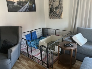 7 tiineysviikko rupeaa kääntymään loppua kohden. Pentulan rakennus oli viikonlopun projekti ja jokuselle kotiehdokkaalle jo soiteltu. Osan kanssa sovittu päivä milloin soitellaan. Suomi on pitkä maa ja välimatkaa meille on monella riittämiin. Osalla on rotu tuttu jo ennestään ja osalla ei. Kennelin emännän mietintämyssy on syvällä päässä kotiehdokkaiden kohdalla. Todella paljon kyselyä pennuista tullut. Osalle onni käy ja löytyy pentu osalle ei. Vielä ei tiedetä montako pentua Sissin on hautonut isossa mahassaan.Ensi viikon lopulla tämäkin ratkeaa. Olemme menossa röntkeniin. Meillä ei ole Pääsiäisenä päivystävää eläinlääkäriä yöllä mailla halmein joten tietää pitää monta tarvitsee ulos tulla.