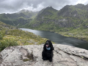 Ruokataukoa välillä pidettiin ja jaloteltiin. Seuraavan aamun lautta ei odottele matkamiehiä. Kilometrejä tulee ennen rajaa. Ruotsin ja Norjan rajalla koiran paperit pitää käydä näyttämässä tullille. Se on sitten tarina toinen haluaako tullimies tarkemmin tutkia . Matkan jatkuessa myös mietittiin missä yövytään ennen Norjan lauttaa?? Hyvä yöpaikka löytyi matkan varrelta reissaajille. Sään jumalat ei aina ole meidän kanssa samaa mieltä joten me myös lähdettiin suunniteltua aijemmin kiipeämään eräskin porras ylöspäin. Lofooteilla ei ole kovin helppo löytää yöpaikkaa autossa yöpyjän inhimilliseen hintaan saati puskaparkkeja jotka on ilmaisia. Myöskin hygienia on hyvä pitää yllä ellei halua jokaisen reissaajan painajaista eli mahatautia tai ripulia riesakseen. Meillä kulki mukana puhtaat juomavedet jotka vaihdettiin tasaseen joko Camping alueilla tai muualla mistä puhdasta vettä saatiin. Sissille löytyi omat luut ja ruuat mukaan auton syövereistä ja riippuen missä aamupalaa tai ruokaa tehtiin. Sissi oli oman häkin sijaan joko pedin päällä tai omalla penkillä mikä ihan häntä varten mukana. Päivän lämpötilat oli sen verran paljon ettei tarvinnut kaivaa paksua villapaitaa kovinkaan montaa kertaa reissun aikana. Sissille oli mukana oma makuupussi muttei kelvannut kun pääsi emännän ja isännän makuupussien päälle nukkumaan kesämakupussin alle. Muutamana yönä sai villapaitaa päälle illan vesisateiden jälkeen. Kuka nyt haluaa nukkua märällä turkilla saati kylmissään. Reitti meillä kulki Lofooteilta kohti pohjoista eräänkin mutkan kautta ja Käytiin myös siinä kuuluisassa viimeisessä paikassa minne pääsee autolla.. Loman loppuessa oli palattava kohti Suomea ja tiputeltava kotiin. Seuraavana taitaa olla emännän pika pyrähdys pikku prinsessan hakuun. Siitä oma tarinanasa